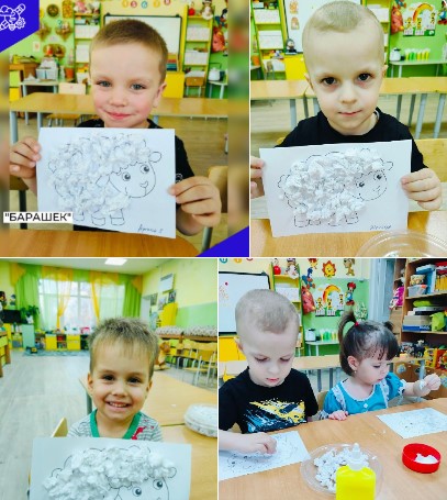 Кружок "Волшебная бумага" в младшей группе. Тема "Барашек".